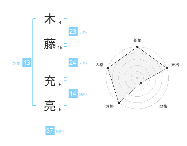 木藤 充亮さんの総格は37画の5点!
