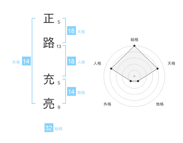 正路 充亮さんの総格は32画の5点!
