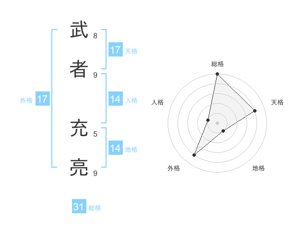 武者 充亮さんの総格は31画の5点!