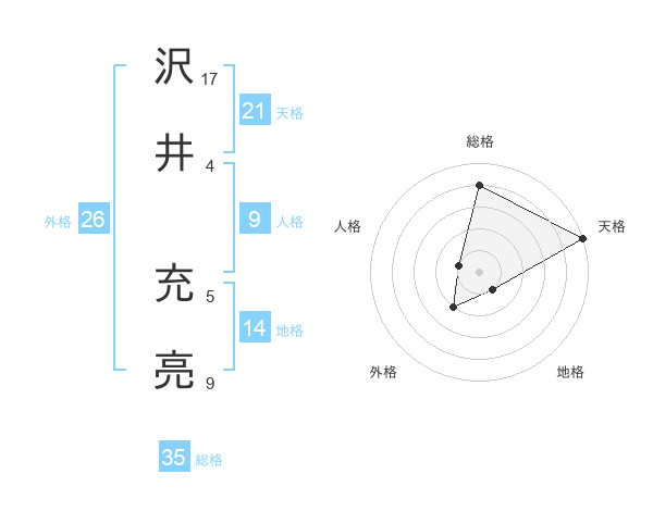 沢井 充亮さんの総格は35画の4点!