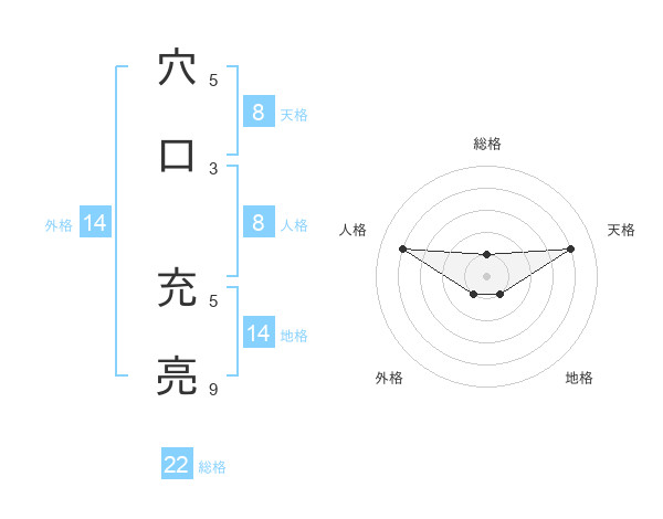穴口 充亮さんの総格は22画の1点!