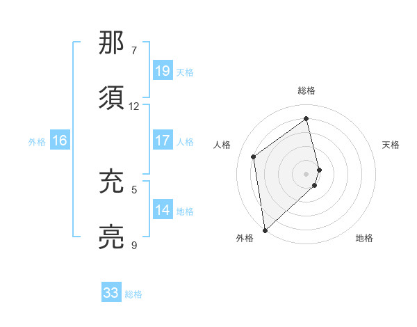那須 充亮さんの外格は16画の5点!