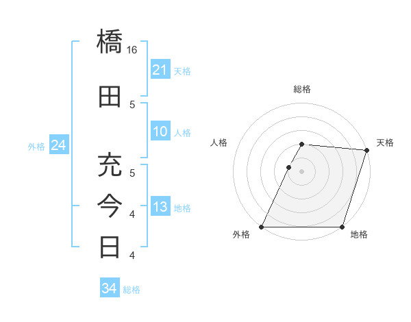 橋田 充今日さんを姓名の画数から五運を鑑定