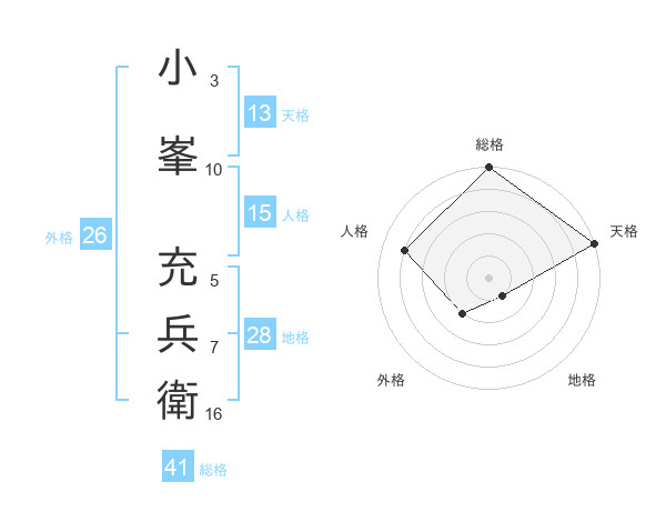 小峯 充兵衛さんを姓名の画数から五運を鑑定