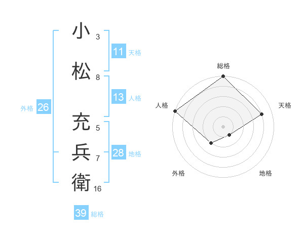 小松 充兵衛さんを姓名の画数から五運を鑑定