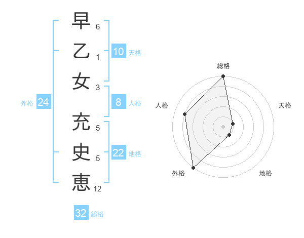 早乙女 充史恵さんの総格は32画の5点