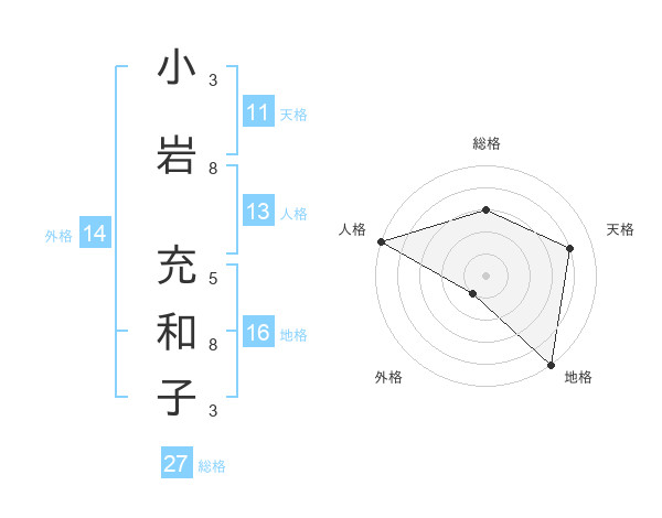 小岩 充和子さんを姓名の画数から五運を鑑定