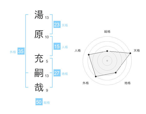 湯原 充嗣哉さんを姓名の画数から五運を鑑定