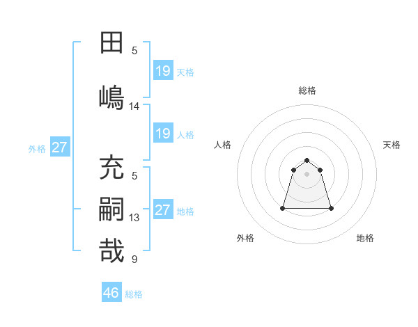 田嶋 充嗣哉さんの天格は19画の1点!