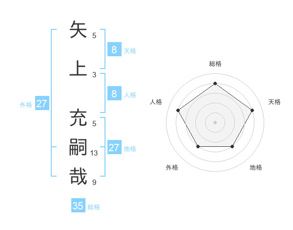 矢上 充嗣哉さんの天格は8画の4点!