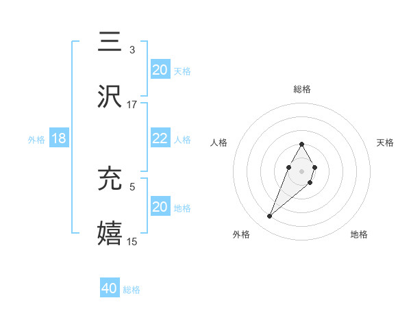 三沢 充嬉さんを姓名の画数から五運を鑑定