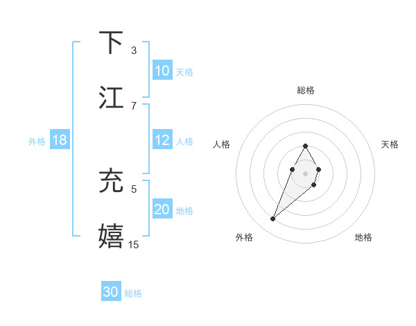 下江 充嬉さんの総格は30画の2点!