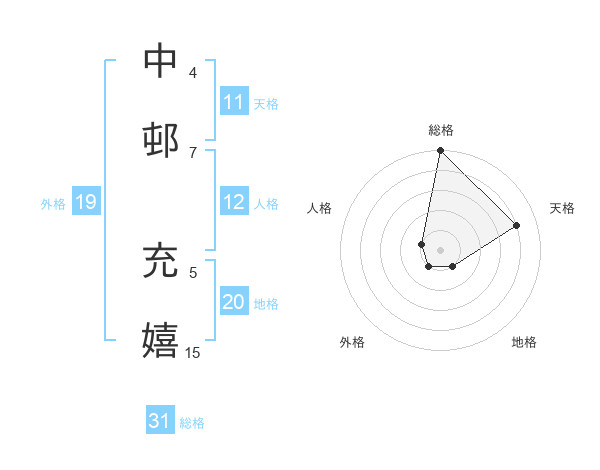 中邨 充嬉さんの外格は19画の1点!