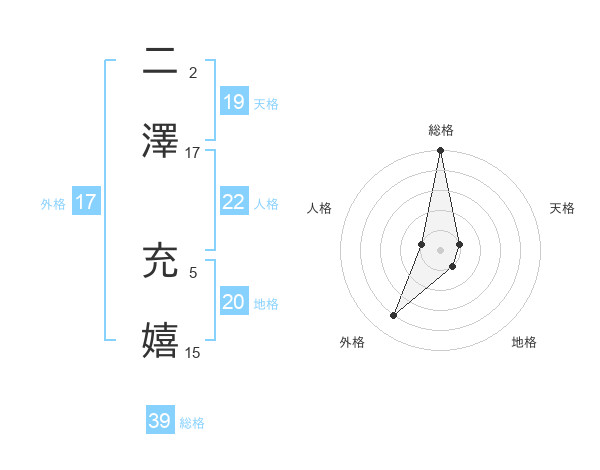 二澤 充嬉さんの天格は19画の1点!
