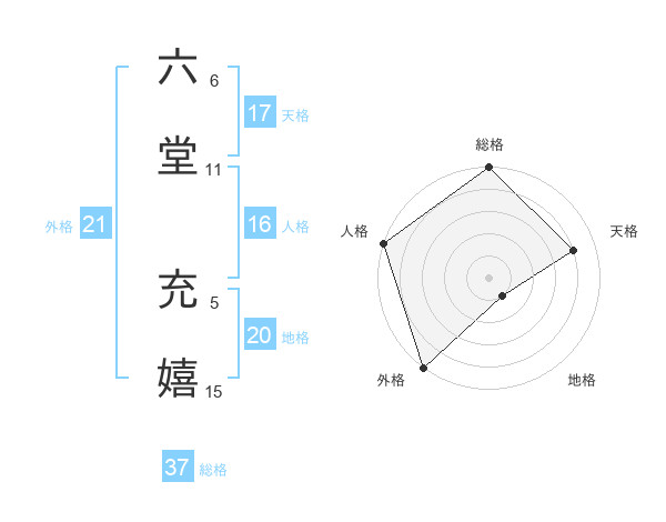 六堂 充嬉さんを姓名の画数から五運を鑑定