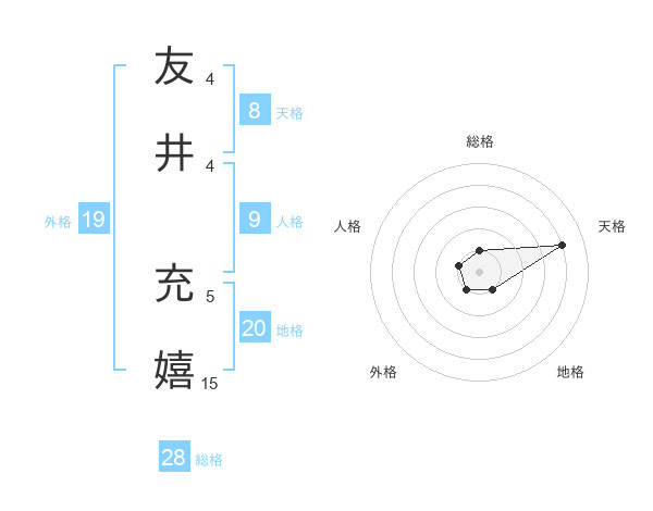 友井 充嬉さんの天格は8画の4点!
