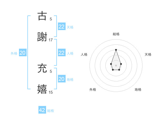 古謝 充嬉さんを姓名の画数から五運を鑑定