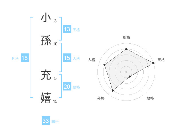 小孫 充嬉さんの天格は13画の5点!