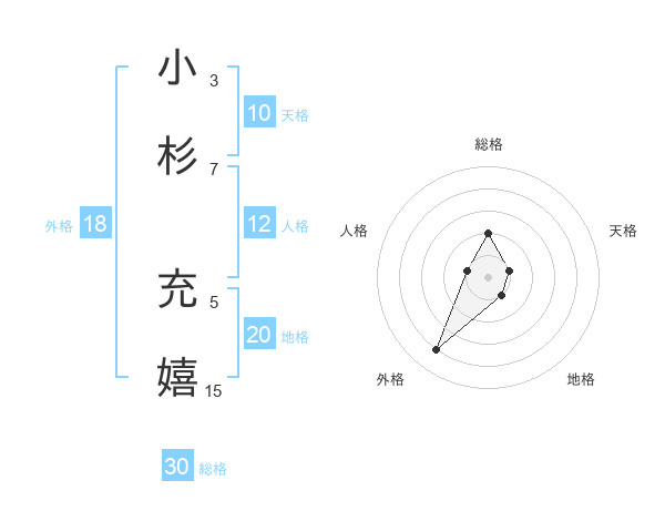 小杉 充嬉さんを姓名の画数から五運を鑑定