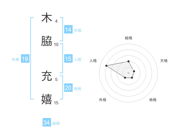 木脇 充嬉さんを姓名の画数から五運を鑑定