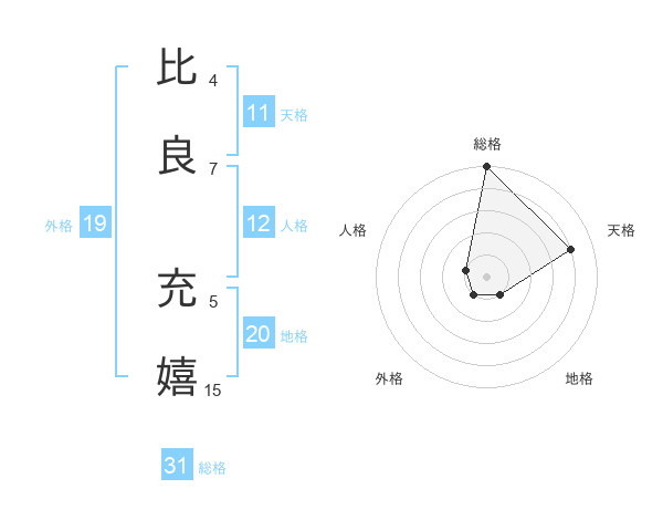 比良 充嬉さんの総格は31画の5点!