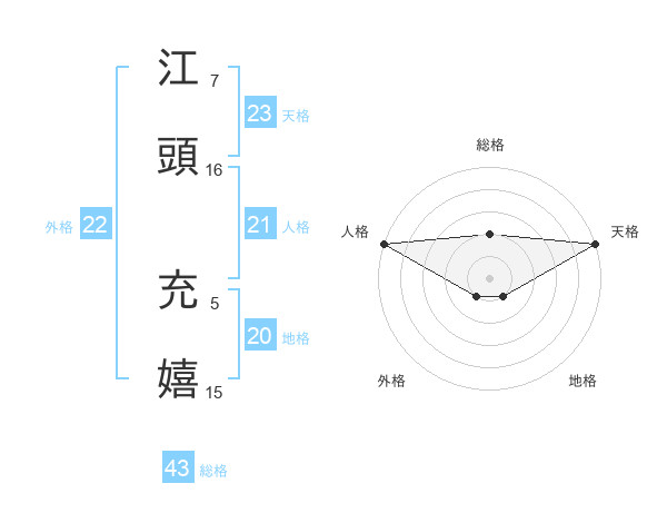 江頭 充嬉さんの天格は23画の5点!
