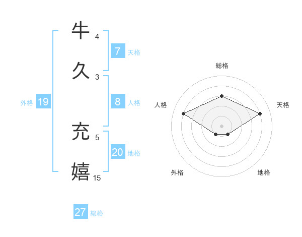 牛久 充嬉さんを姓名の画数から五運を鑑定
