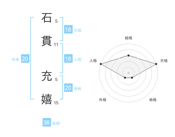 石貫 充嬉さんを姓名の画数から五運を鑑定