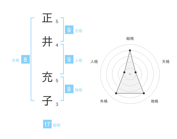 正井 充子さんの総格は17画の4点!