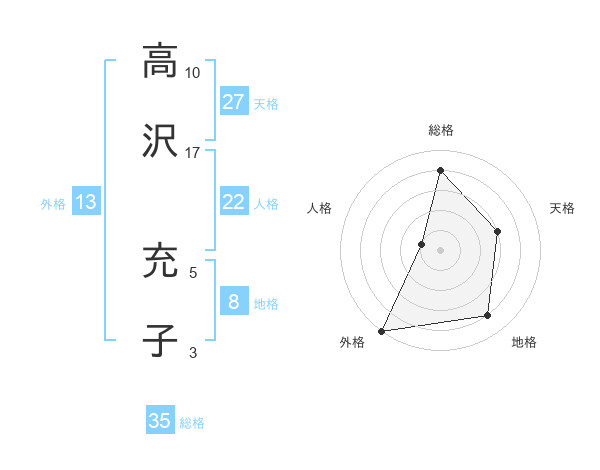 高沢 充子さんの外格は13画の5点!