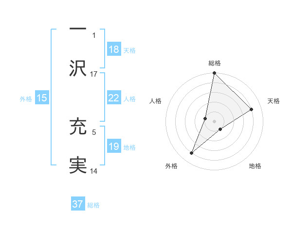 一沢 充実さんの総格は37画の5点!