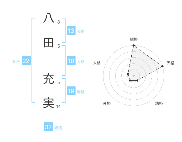 八田 充実さんの総格は32画の5点!