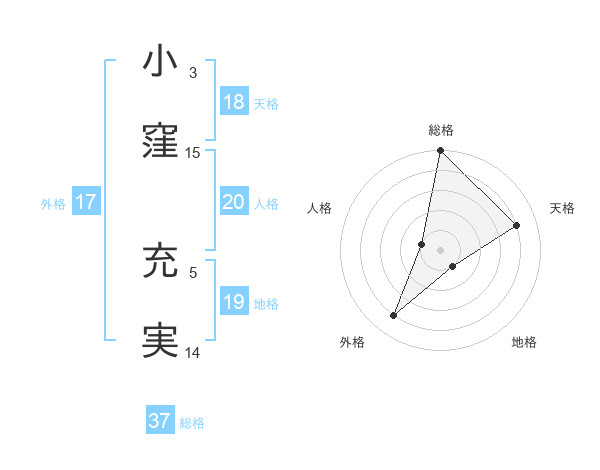 小窪 充実さんの総格は37画の5点!