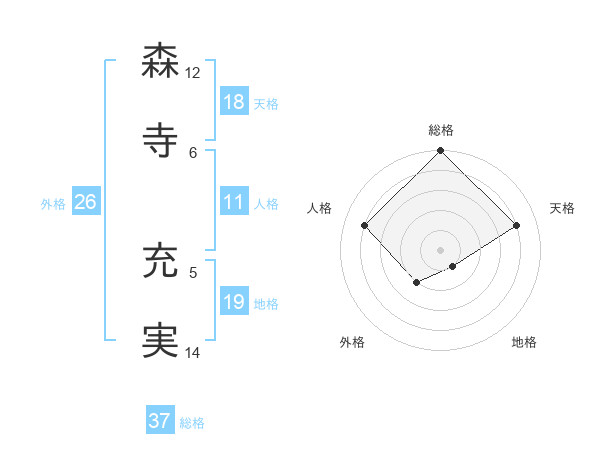 森寺 充実さんの総格は37画の5点!
