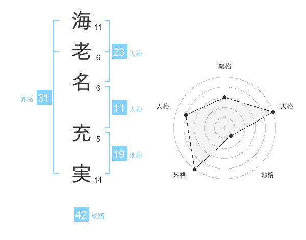 海老名 充実さんの総格は42画の3点!