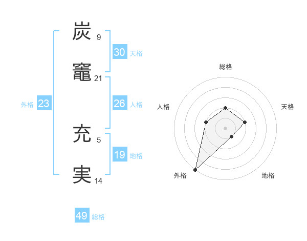 炭竈 充実さんの総格は49画の2点!