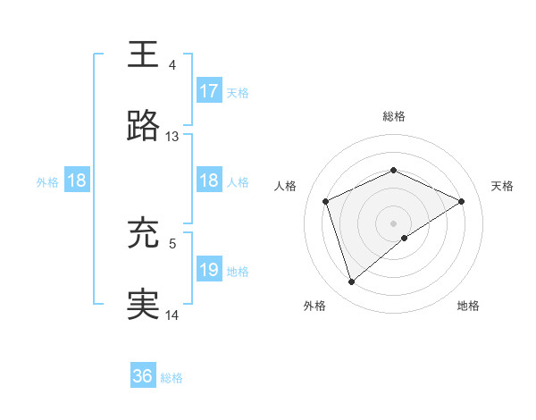 王路 充実さんの天格は17画の4点!
