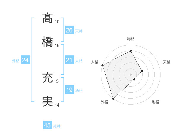 髙橋 充実さんの外格は24画の5点!