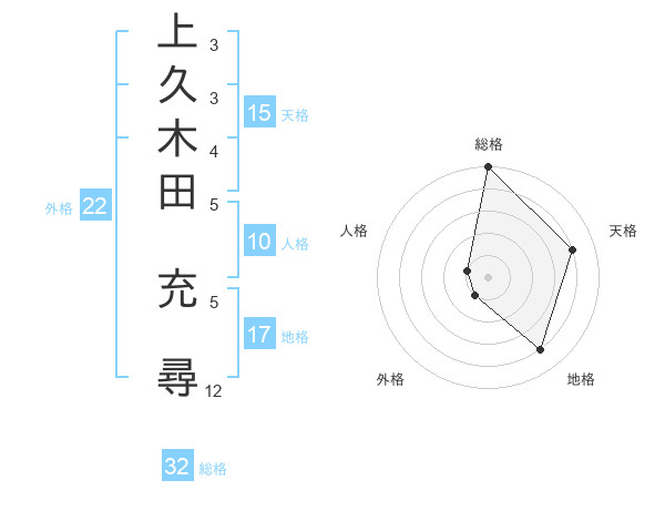 上久木田 充尋さんを姓名の画数から五運を鑑定