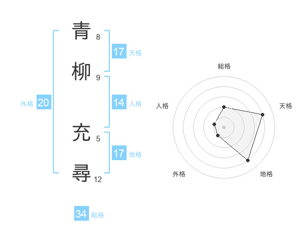 青柳 充尋さんの天格は17画の4点!