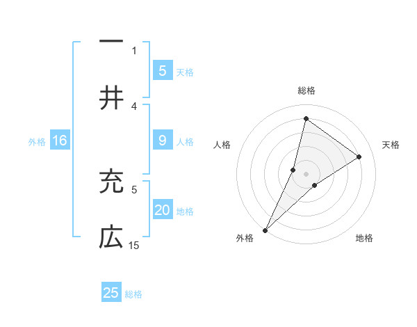 一井 充広さんの総格は25画の4点!