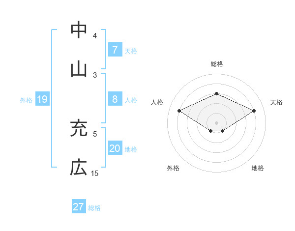 中山 充広さんの総格は27画の3点!