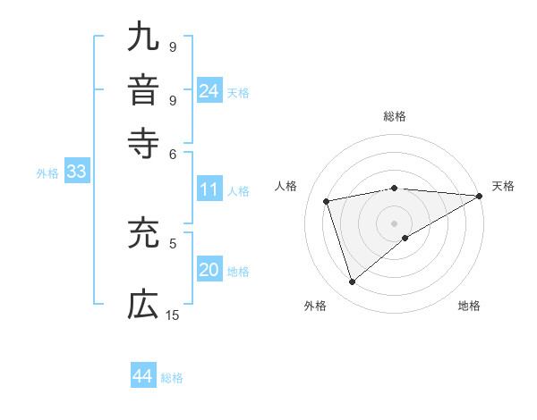 九音寺 充広さんの総格は44画の2点!