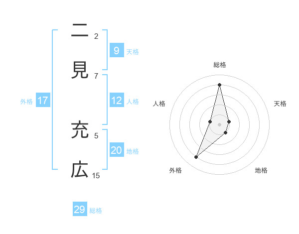 二見 充広さんの総格は29画の4点!
