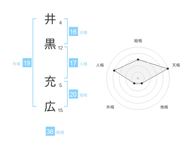 井黒 充広さんの天格は16画の5点!