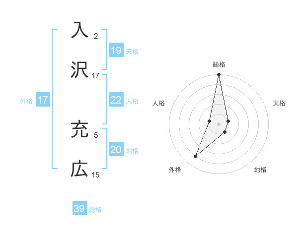 入沢 充広さんの総格は39画の5点!