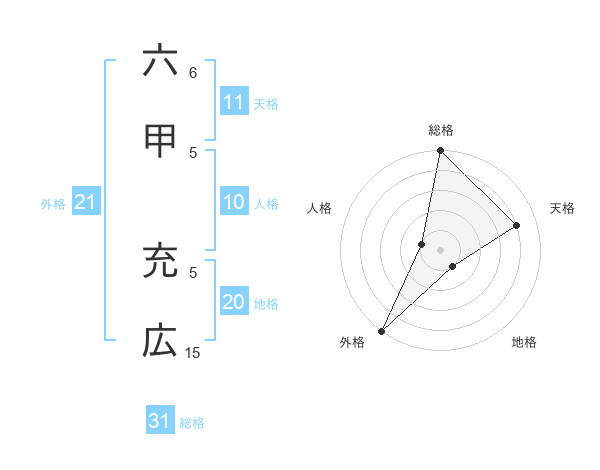 六甲 充広さんの総格は31画の5点!
