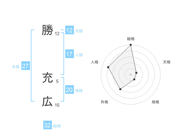 勝 充広さんの総格は32画の5点!