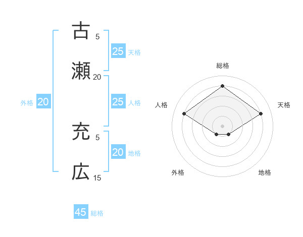 古瀬 充広さんの総格は45画の4点!