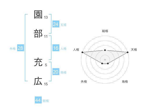 園部 充広さんの総格は44画の2点!